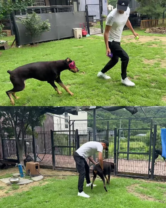 배정남은 뛰어 노는 벨의 모습에 미소를 지으며 장난감을 던지는 등 행복한 모습이다.