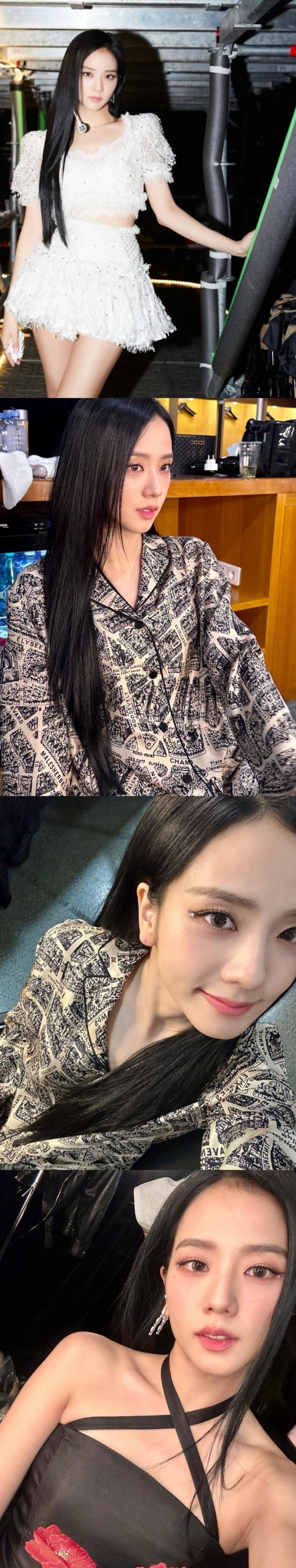 공개된 사진 속 지수는 프랑스 파리 콘서트 대기실에서 포즈를 취하며 뛰어난 외모를 과시했다. 특히 또렷한 이목구비와 도자기 같은 매끈한 피부가 시선을 사로잡았다.