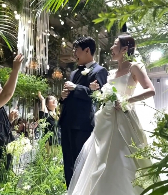 영상 속 두 사람은 버진로드 위에서 하객들의 축하를 받으며 환하게 웃고 있는 모습. 레이디 제인은 순백의 웨딩드레스와 부케를 들고 행복한 미소를 짓고 있고, 임현태는 턱시도를 완벽 소화한 채 꽃잎 세례를 받고 있다.