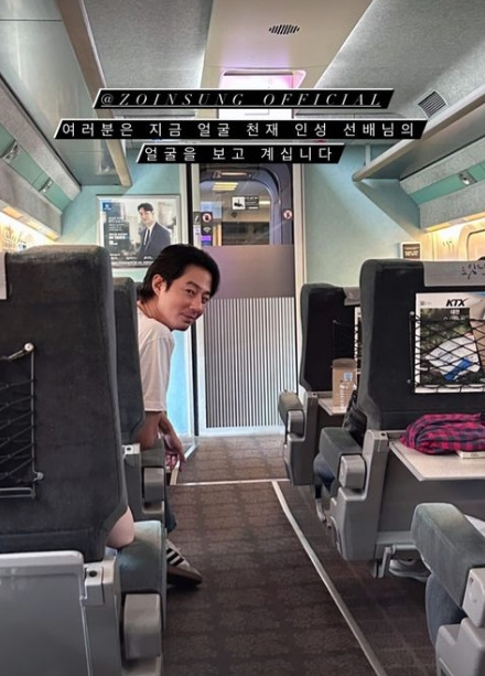 고민시는 22일 자신의 인스타그램 스토리에 "여러분은 지금 얼굴 천재 인성 선배님의 얼굴을 보고 계십니다"라는 글이 적힌 사진을 게재했다.