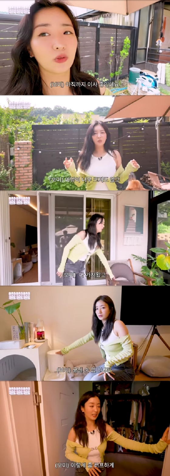 이날 윤보미는 "두 달 전에 이사했다. 이 집이 끝날 때까지 이사하는 기간이라고 해도 될 만큼 아직까지 이사 중이다. 별 게 없어서 투어라는 게 조금 민망하지만 열심히 살고 있으니까 보여드리도록 하겠다"며 마당을 소개했다.