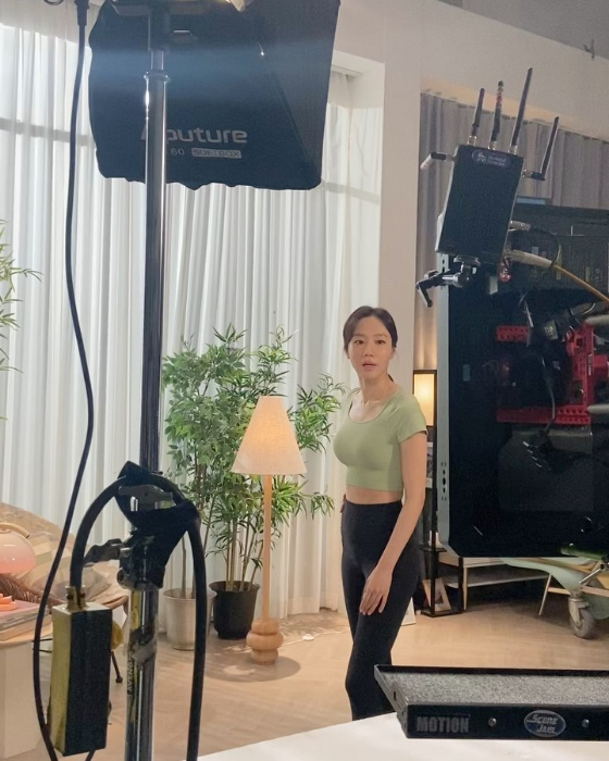 공개된 사진에는 김아중이 촬영 중인 모습이 담겼다. 레깅스 운동복 차림으로 있는 김아중은 여전한 미녀 자태를 뽐내고 있다.