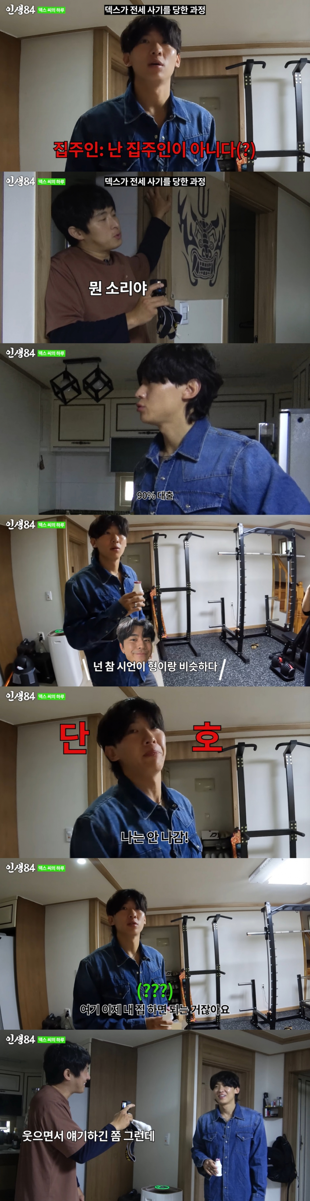 하지만 확인해보니 실제로 집주인이 바뀌었다는 것. 덱스는 "지난해 물이 터져서 공사를 하는데 거기서부터 뭔가 이상했다. 수리비를 청구하려니까 집주인이 '난 집주인이 아니다', '난 명의만 빌려줬다', '돈이 없어서 급전이 필요해가지고 몇 백만원을 준다고 해서 명의만 빌려줬을 뿐이다'라고 하더라"라고 밝혔다.