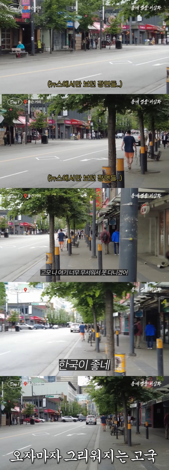 하지만 행복도 잠시, 두 사람은 "너무 무섭다. 땅바닥에 기어다녀"라며 마약에 중독돼 길거리에 널브러진 사람들을 카메라에 담았다. 이상화는 "피디님 보세요. 한국이 좋다", 조카는 "여기 너무 무서워서 못다니겠다"라며 울상을 지었다. 말 그대로 뉴스에서만 보던 장면이 실제로 눈 앞에 펼쳐졌기 때문.