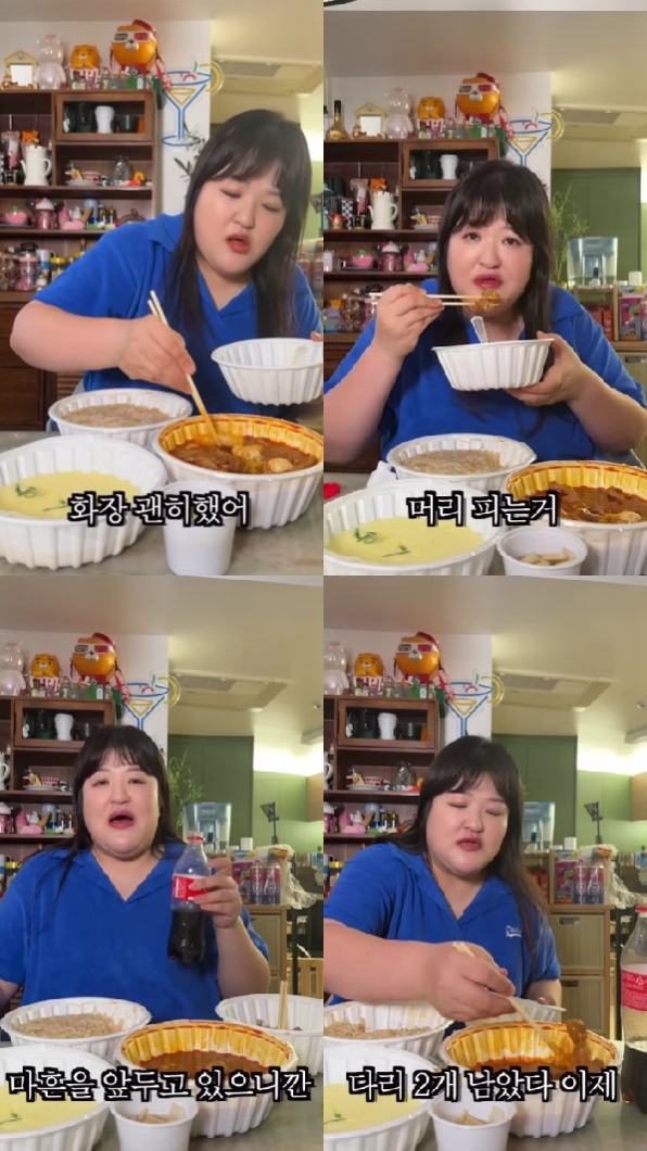 그러면서 "오늘은 밥 먹기 적적해서 영상을 켰다. 힘든 일 있어도 힘내고 안 힘든 사람 없다. 다 고민 하나씩 있다. '왜 나만 힘들지?'라고 생각하지 말고 나이 그까짓 거 이겨내면 된다. 저는 매운 거 먹었더니 힘이 나는 것 같다"고 위로했다.