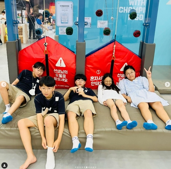 사진 속 추사랑과 지온, 삼둥이는 소파에 모여앉은 모습을 보여주는가 하면, 야노 시호와 추사랑, 윤혜진과 엄지온 모녀들이 나란히 붙어 장난기 넘치는 분위기를 보여주기도 했다.