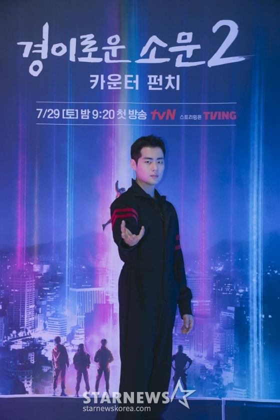 또 "오늘은 내 개인적인 자리가 아니기 때문에, 이 드라마에 많은 스태프, 감독, 배우들이 피와 땀, 많은 노력을 들인 드라마라는 걸 잘 알고 있기 때문에 오늘은 '경소문2'('경이로운 소문2')에 많은 사랑과 관심 보내주셨으면 좋겠다. 이런 책임감을 가진 만큼 시즌1보다 더 악에 받쳐서 촬영했다. 오늘 하루만큼은 '경소문2'에 대해 많은 관심 보내주시길 바란다"라고 밝히기도 했다.