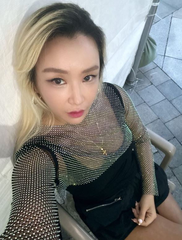 공개된 사진에는 배윤정이 tvN 예능 프로그램 '댄스가수 유랑단' 촬영 일환으로 무대에 오르기 전 모습이 담겨 있다.