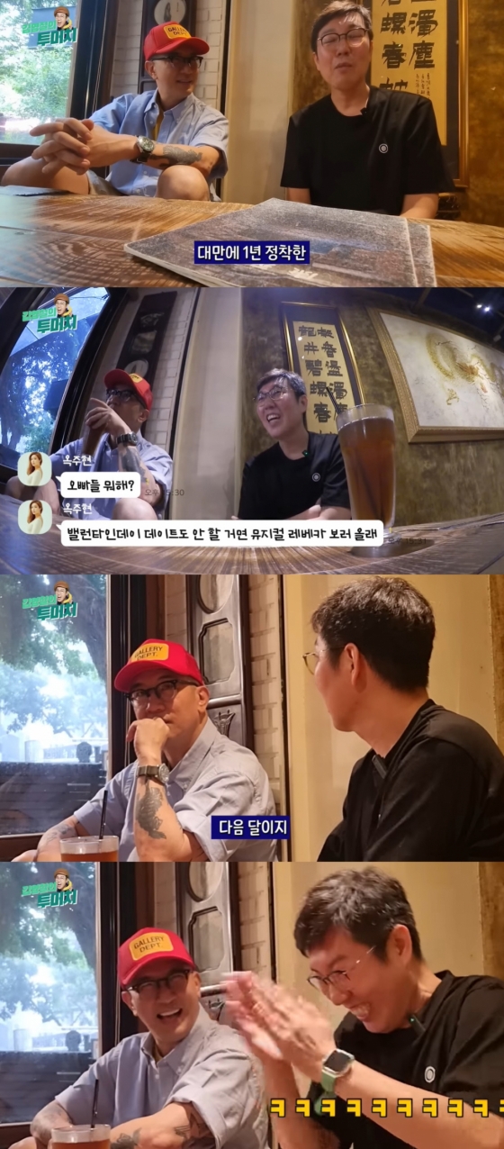그는 "서울에서도 작업실하고 집 밖에만 있지 않나. 카페 가서 널 만난 거 아니냐. 대만에서도 뭐 어디 나갈 곳이 있나. 또 희원이랑 나가도 어두워서 어디로 가는지 잘 모른다. 내가 뭘 아냐"라며 "대만에 작업실 만들었다. 활동하고 있고 방송도 나온다"라고 근황을 전했다.