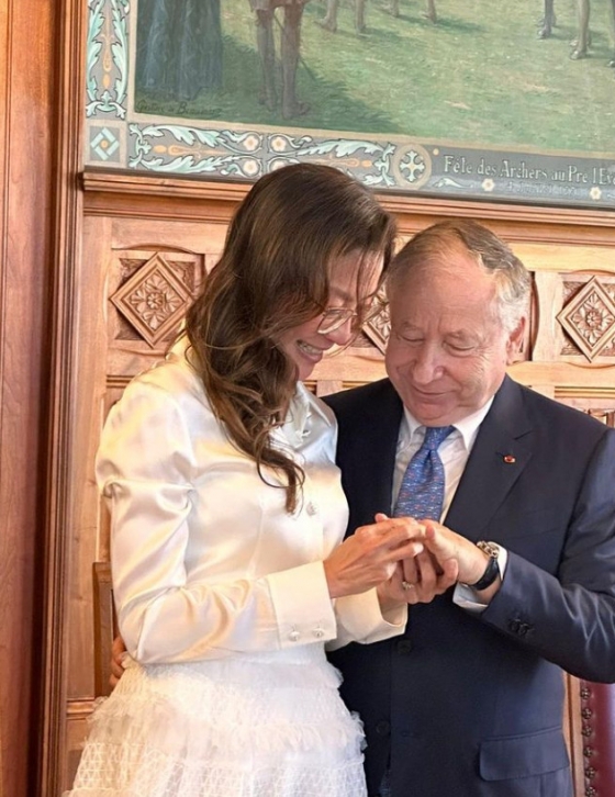 말레이시아 출신 홍콩 배우 양자경(량쯔충·60)이 장 토드 전 페라리 CEO(77)와 결혼 후 모습을 공개했다.