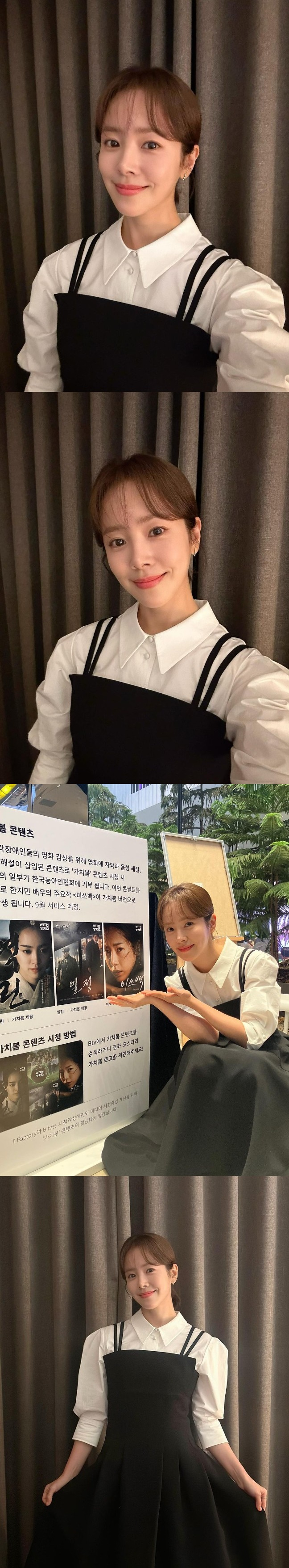 공개된 사진 속 한지민은 검은색 뷔스티에 원피스와 흰색 블라우스를 매치해 단아한 분위기를 풍겼다. 특히 그의 맑은 눈빛과 선한 인상이 아름다운 외모를 더욱 부각시켰다.