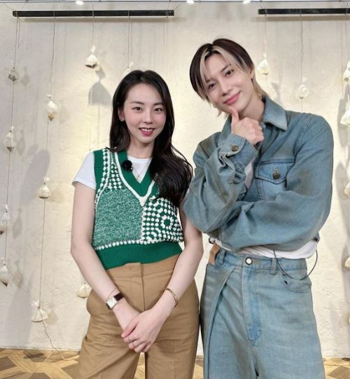 공개된 사진 속 소희는 태민과 함께 나란히 서 카메라 앞에서 포즈를 취하고 있다. 2세대 대표 아이돌들의 반가운 만남과 두 사람의 비주얼 케미가 보는 이들의 시선을 사로잡는다.