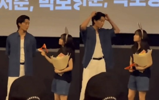 때문에 이를 본 일부 팬들은 "박보영 민망하겠다", "팬이 준비한 건데 그거 하나 못 해주냐", "다른 연예인들은 다 해주던데 박서준만 안 해주더라", "매너 없다", "저럴 거면 무대 인사 왜 하냐" 등의 반응을 내비치며 박서준의 행동을 비난했다.