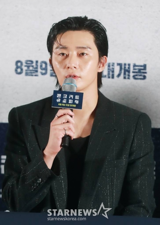 박서준은 지난 5일 부산 부산진구 롯데시네마에서 영화 '콘크리트 유토피아' 무대인사에 참석했다. 이 자리에는 박서준 외에도 엄태화 감독을 비롯해 배우 이병헌, 박보영, 김도윤 등이 함께했다.