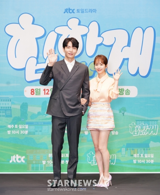 배우 이민기, 한지민이 10일 오후 온라인으로 진행된 JTBC 토일드라마 '힙하게' 제작발표회에 참석해 포즈를 취하고 있다.