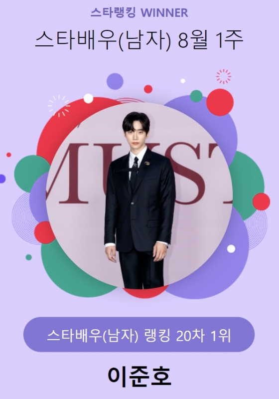 이준호는 지난 3일 오후 3시 1분부터 10일 오후 3시까지 진행된 8월 1주(20차) 스타랭킹 스타배우 남자 랭킹 투표에서 김남길, 류준열을 꺾고 1위를 차지했다.