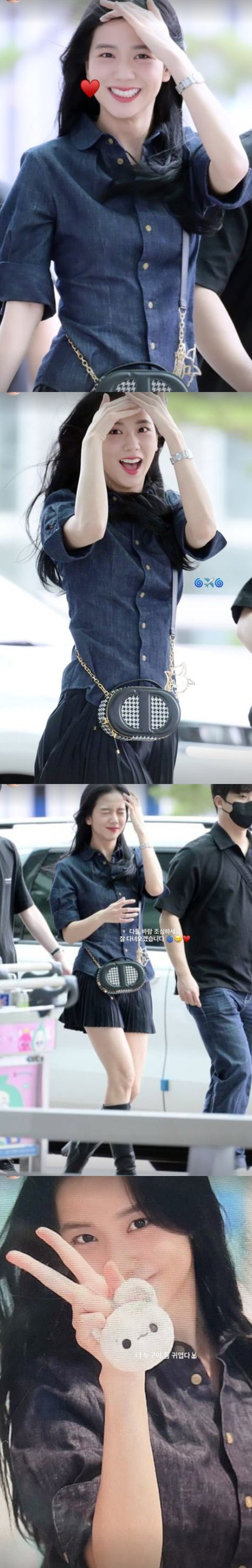 공개된 사진 속 지수는 청 남방과 검은색 플리츠스커트, 미니 백을 매치해 깜찍한 캐주얼 룩을 완성시켰다. 특히 눈 웃음과 하트 모양의 입매가 사랑스러운 분위기를 자아내 이목을 집중시켰다.