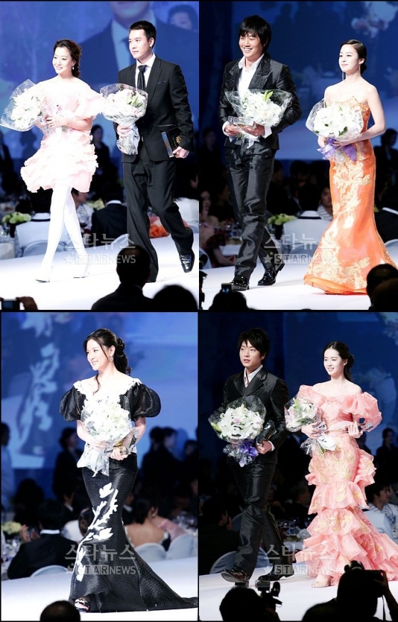 그는 서양의 우아한 곡선에 동양적인 아름다움을 더한 의상으로 세계 패션계에서 주목 받았다. 이영애, 장동건, 배용준, 이병헌, 소지섭, 송승헌, 권상우, 원빈, 최지우, 송혜교, 김태희, 김희선, 안정환, 이준기, 고아라 등 당대 톱스타들이 앙드레김의 패션쇼에 모델로 서 특유의 이마를 맞댄 엔딩 포즈로 화제를 모으기도 했다.