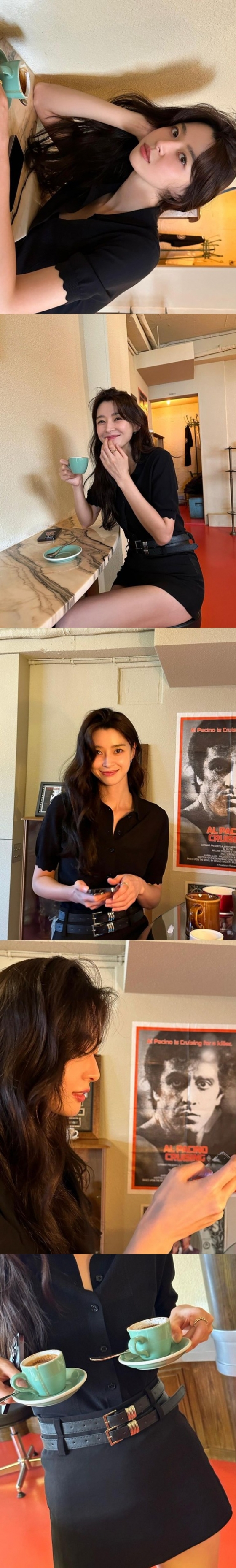 공개된 사진 속 권나라는 풍성한 웨이브 머리를 하고 검은색 짧은 원피스와 벨트를 매치해 섹시한 서머 룩을 완성시켰다. 특히 카페의 로맨틱한 분위기에 어우러지는 부드럽고 여유 있는 미소가 분위기를 한층 더 돋보이게 했다.