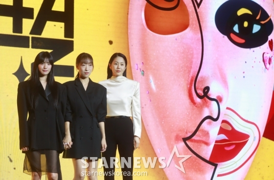 배우 나나, 이한별, 고현정이 16일 오전 서울 JW 메리어트 동대문 스퀘어에서 진행된 넷플릭스 오리지널 시리즈 '마스크걸' 제작발표회에 참석해 포즈를 취하고 있다.