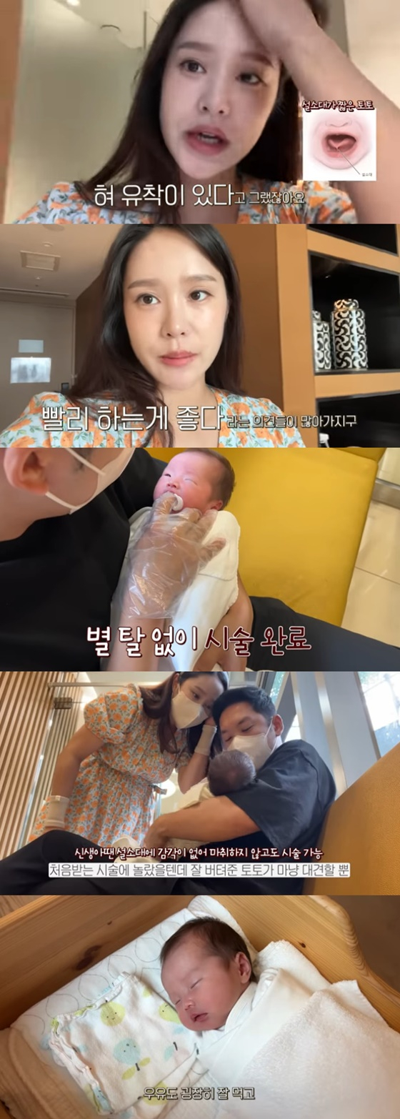 이날 헤이지니는 "토토(태명)가 병원에서 나올 때 설소대, 혀 유착이 있다고 그러지 않았냐. 그후 조리원 소아과 검진에서도 비슷한 소견이 있었다"고 밝혔다.