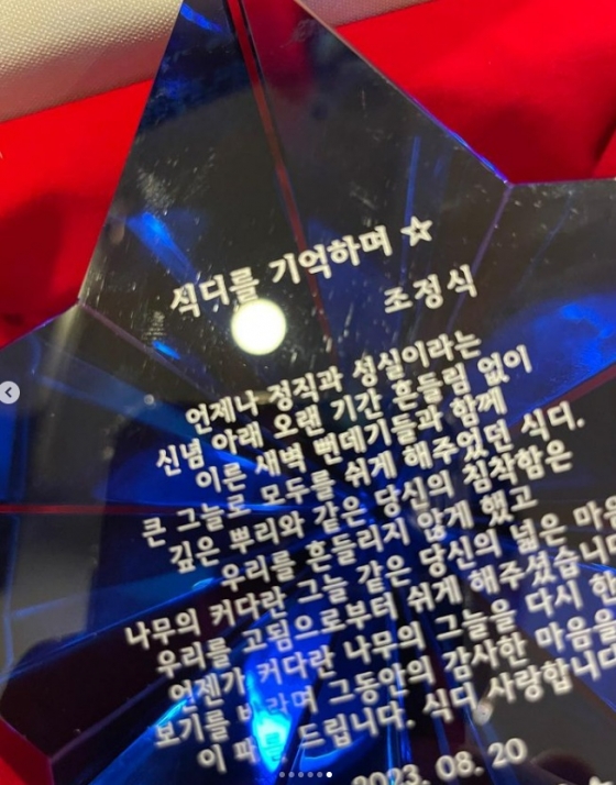 '펀펀투데이' 제작진은 감사패를 통해 "조정식 DJ와 함께한 모든 날이 소중했습니다. 하루도 늦지 않고 새벽 5시를 힘차게 열어줘서 고마웠습니다. 때로는 조비서로 뻔데기만의 가수 제이식스로, 어떤 날은 장난기 많은 동생, 든든한 선배로 웃음과 위로를 전해준 식디! 펀펀투데이를 향한 끊임없는 노력에 감사를 표합니다. 식디의 귀싸대기로 맞이한 아침을 기억하며, 이제 본격적으로 펀펀하고 식식하게 나아갈 조정식의 시작을 응원하겠습니다"라고 전했다.