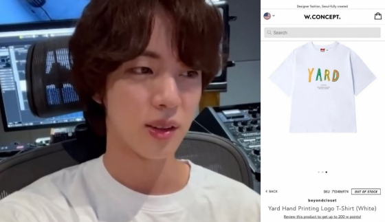 진은 지난 8월 6일 슈가의 앙코르 콘서트를 관람하며 사용했던 손 선풍기를 일본의 공식샵과 미국 아마존 등에서 품절시키고, 지난 7월 방탄소년단 공식 유튜브 채널 'BANGTANTV'를 통해 '[n월의 석진] Message from Jin : Jul 2023' 영상이 공개되자마자 입었던 비욘드 클로젯(BEYOND CLOSET)의 'YARD 핸드 프린팅 로고 티셔츠'를 품절시키는 등 군백기에도 변치않는 '솔드아웃킹' 면모를 빛냈다.