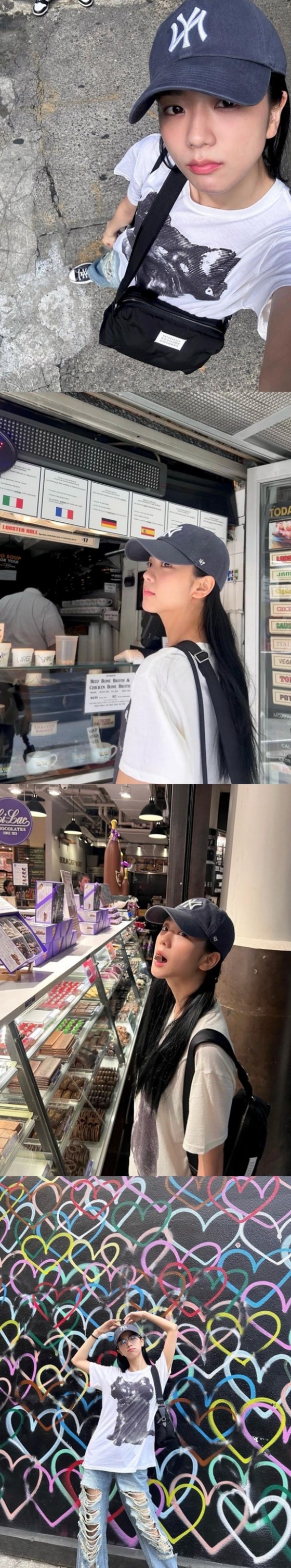 공개된 사진 속 지수는 남색 캡모자에 흰색 티셔츠, 청바지를 매치해 '꾸안꾸'(꾸민 듯 안 꾸민 듯) 캐주얼 룩을 완성했다. 특히 그는 수수한 화장을 하고 장난스러운 표정을 짓고 있어 여자친구가 애교 부리는 듯한 사랑스러운 분위기를 자아냈다.