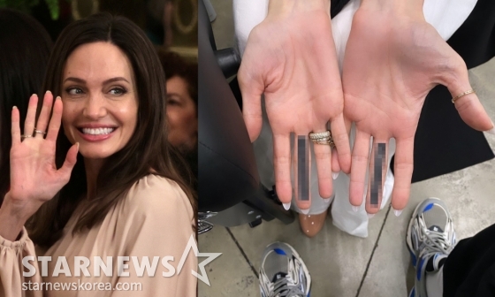 배우 안젤리나 졸리가 양손 가운뎃손가락에 문신을 새긴 가운데, 팬들이 그 의미를 추측하고 있다.