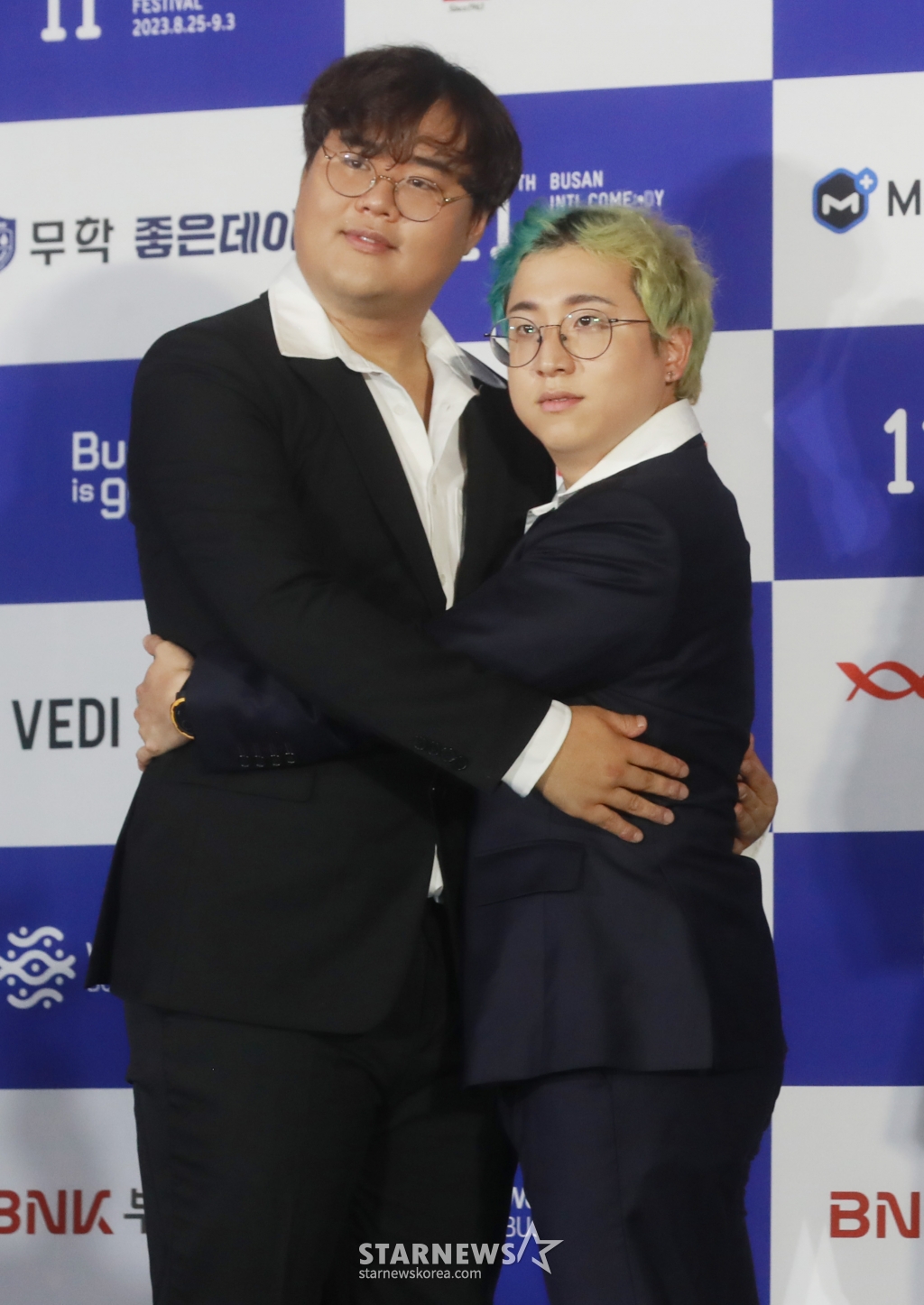 코미디언 김원식, 조다현이 25일 오후 부산 영화의 전당에서 진행된 제11회 부산국제코미디페스티벌(BICF) 블루카펫 행사에 참석해 포즈를 취하고 있다.