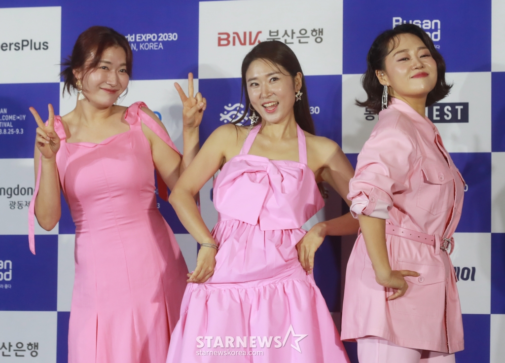코미디언 김미려, 김경아, 조승희가 25일 오후 부산 영화의 전당에서 진행된 제11회 부산국제코미디페스티벌(BICF) 블루카펫 행사에 참석해 포즈를 취하고 있다.