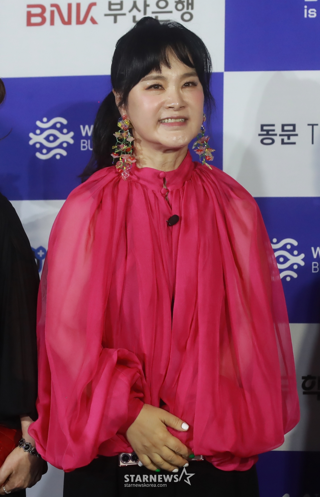 코미디언 지영옥이 25일 오후 부산 영화의 전당에서 진행된 제11회 부산국제코미디페스티벌(BICF) 블루카펫 행사에 참석해 포즈를 취하고 있다.