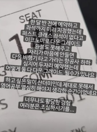 델타항공 측은 "이러한 드문 경우의 관례에 따라, 델타항공은 해당 승객에게 1등석 탑승이 가능한 다음 항공편 탑승을 권하거나, 이코노미석 탑승시 좌석에 대한 차액을 환불 받을 수 있는 옵션을 제공한다"고 설명했다.