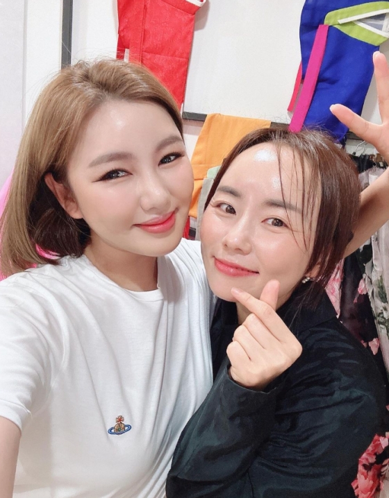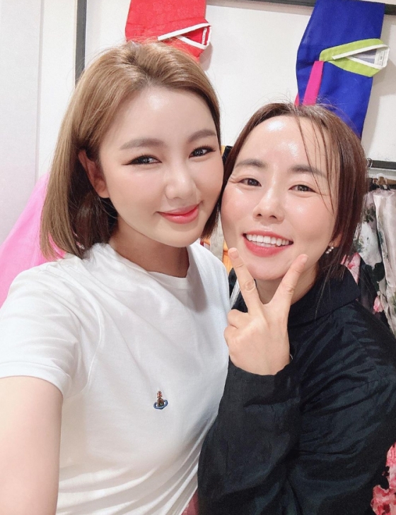 공개된 사진 속 송가인은 민은경과 사이좋게 얼굴을 맞대고 카메라를 응시하고 있다. 특히 백옥 같이 하얀 피부와 환한 미소, 상큼한 눈웃음으로 팬들의 마음을 설레게 했다.