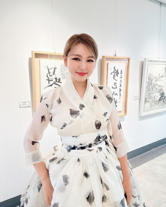 송가인은 지난 1일 자신의 인스타그램에 "곱고 귀한 차이킴 한복 입고. 전남국제수묵비엔날레!"라는 글과 두 장의 사진을 게재했다.