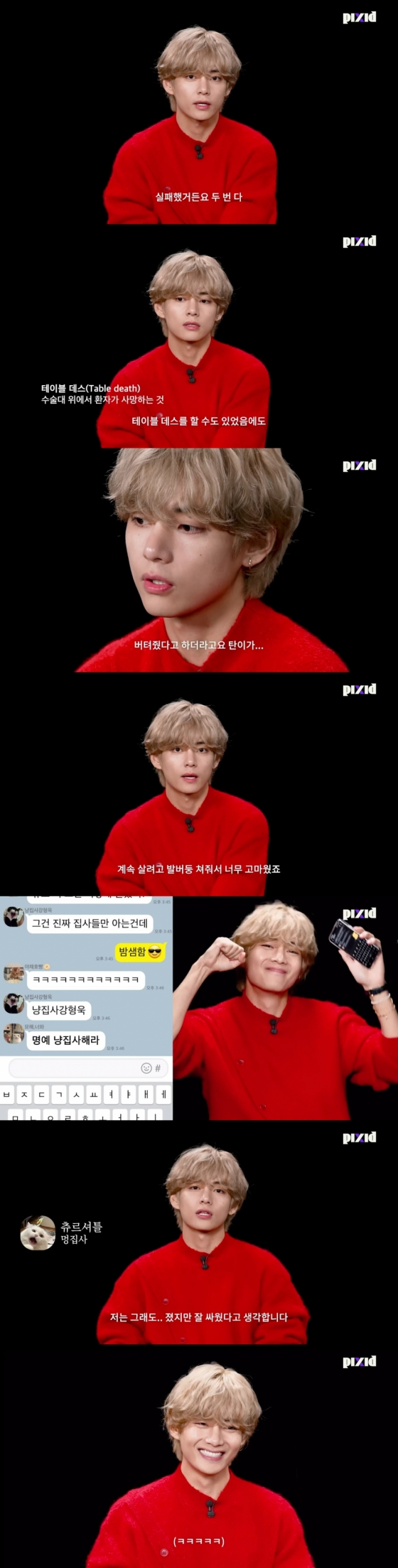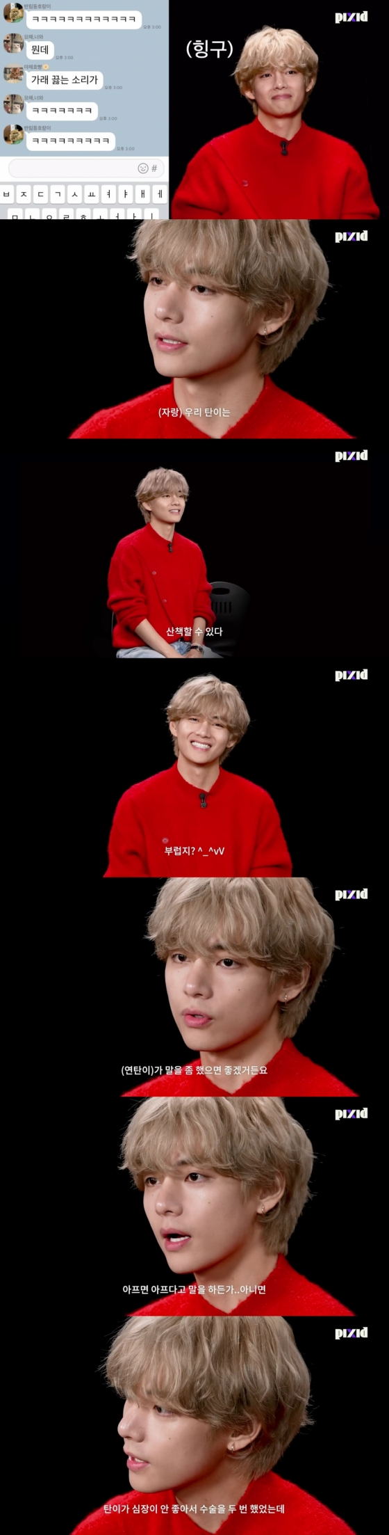 뷔는 "아프진 않는지, 어디가 아픈지 얘가 말 좀 했으면 좋겠거든요. 뭐가 필요한지, 내가 어떤 마음을 가져야 하는지"라며 공감했다.