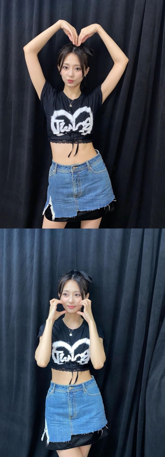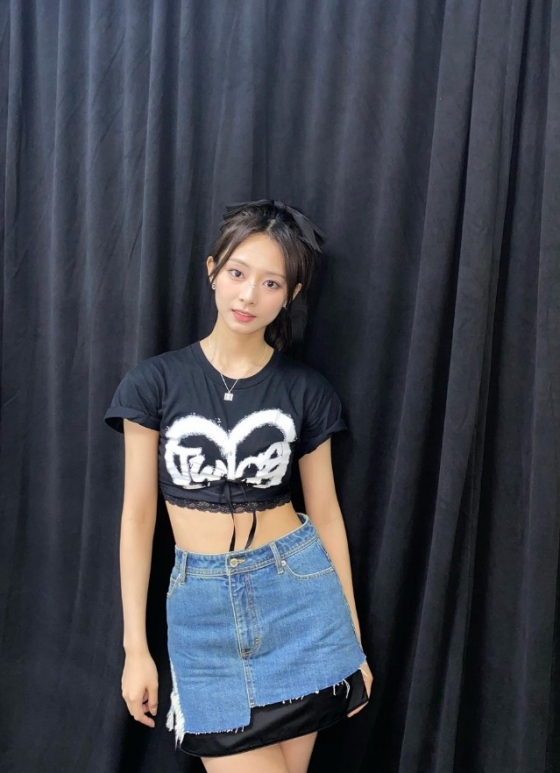 공개된 사진 속 쯔위는 허리라인이 드러나는 검은색 짧은 티셔츠와 청치마를 매치해 발랄한 분위기를 연출했다. 특히 그는 늘씬한 몸매와 한결같은 여신 미모로 팬들의 마음을 설레게 했다.