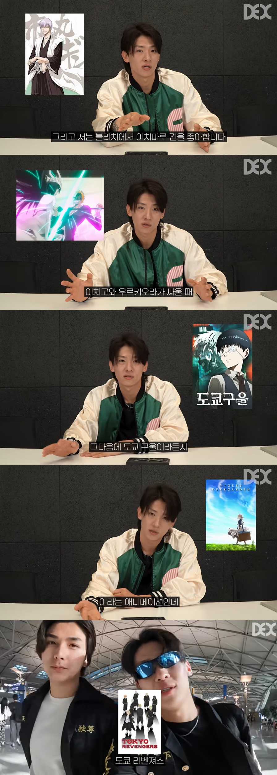 기자: 덱스가 오타쿠처럼 보인다는 게, 본인이 학창시절 때부터 애니메이션을 통달했고 엄청 많이 봤다고 하더라. 아예 본인이 재미있는 애니메이션을 추천하는 콘텐츠가 있었는데 그걸 보고 '아 찐이다'라고 생각했지. 보통 사람이 알기 힘든 작품들도 잘 알더라.