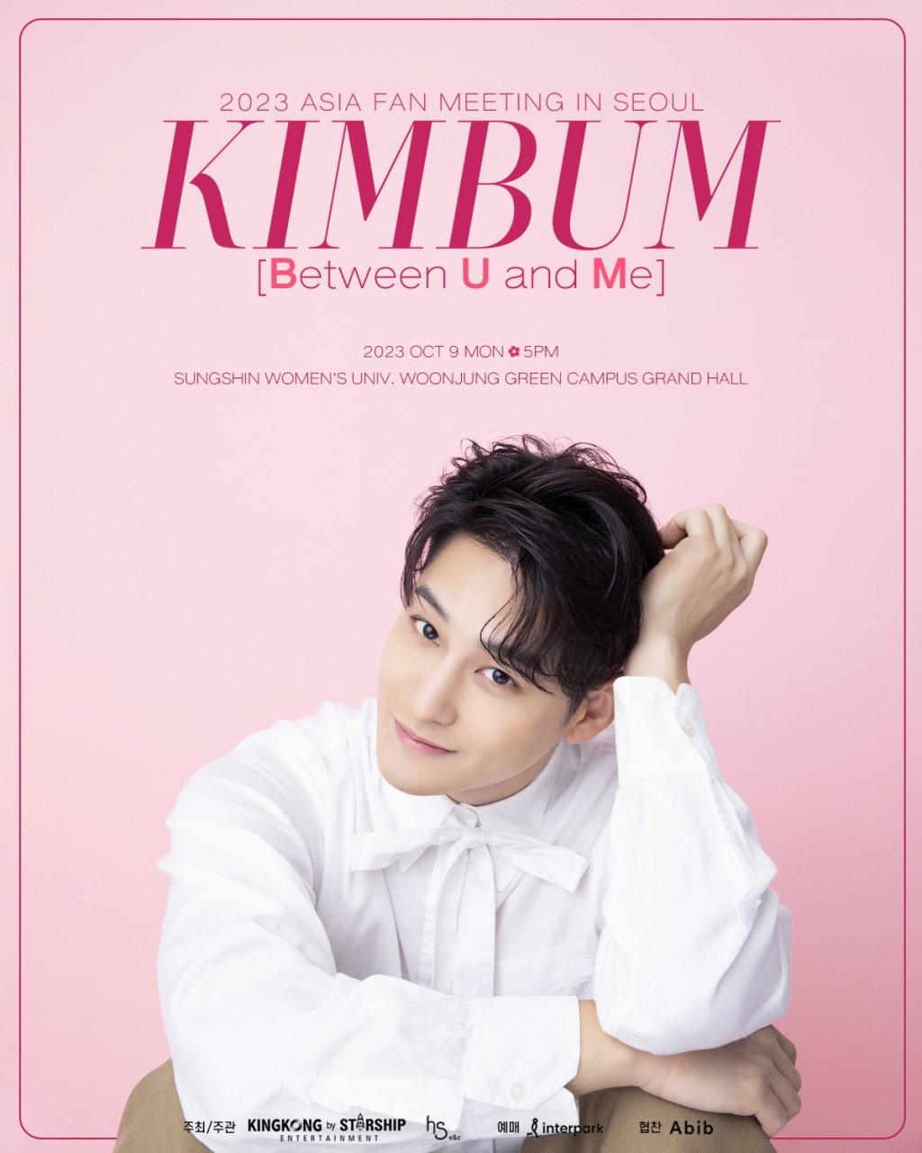 '2023 김범 아시아 팬미팅 인 서울 [Between U and Me]'는 10월 9일 오후 5시 성신여자대학교 운정그린캠퍼스 대강당에서 진행되며, 예매는 11일 오후 8시 인터파크티켓 사이트를 통해 단독 오픈된다.