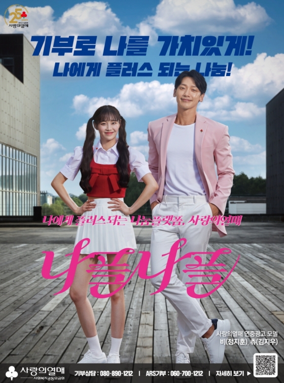 가수 겸 배우 비(정지훈)와 츄가 사랑의열매 사회복지공동모금회(회장 김병준)의 2023년 연중 광고에 모델로 참여한다.