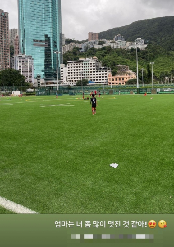 사진을 통해 강수정은 축구장에 있는 아들의 모습과 생일 파티에 열중인 아들의 모습 등을 공개했다.