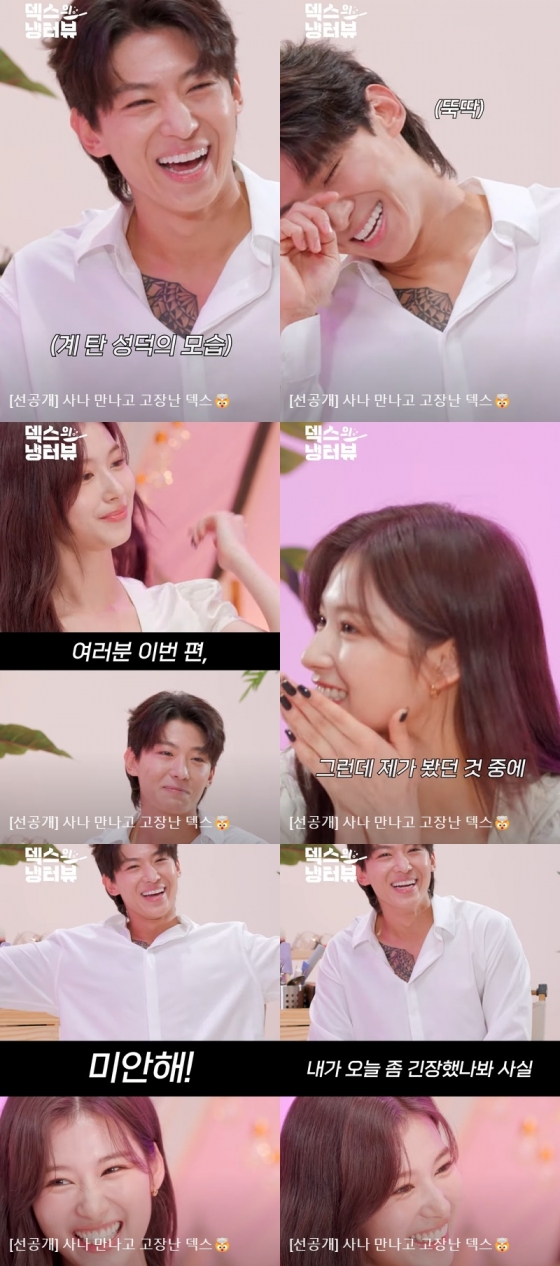 이후 덱스는 "덱스의 냉터뷰를 선택해 준 이유가 무엇이냐"라며 사나에게 첫 질문을 건넸으나, 사나는 "그런데 제가 봤던 것 중에 이렇게 딱딱하지 않으셨는데"라며 덱스를 당황케 만들었다.