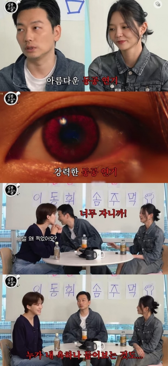 이솜은 이동휘의 첫인상에 대해 "편안한 느낌이 들었다. 혼자 덩그러니 있으면 와서 '뭐하세요?'하고 말도 많이 걸어주셨다"고 설명했다. 이에 이동휘는 "밤샘 촬영이 많다. 이솜 배우가 액션도 많고 고생을 많이 하셨다. 또 운전도 너무 잘하시고, 잘 뛰시고, 건강하시고, 총명하시다"라며 너스레를 떨어 웃음을 자아냈다.