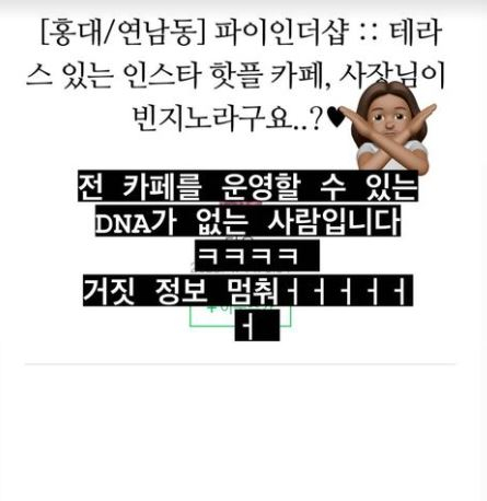 그러면서 "저는 카페를 운영할 수 있는 DNA가 없는 사람입니다. 거짓 정보 멈춰"라고 강조했다.