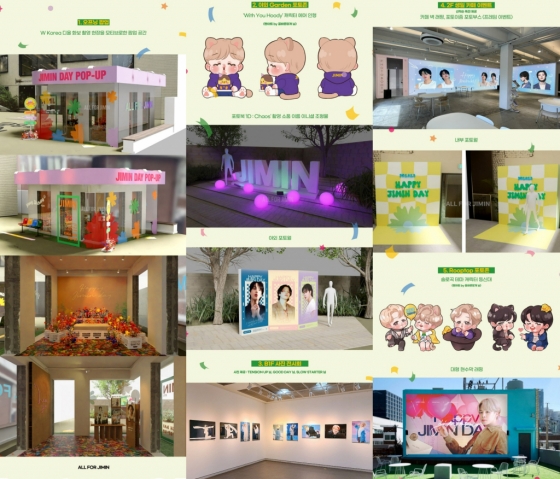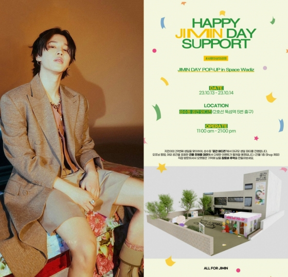 오는 10월 13일 지민의 생일을 축하하기 위해 한국 팬베이스 '올포지민'(ALLFORJIMIN_KOR)이 서울 성수동 '공간와디즈'에서 야외 공간을 포함하여 건물 전체를 대관해 생일 팝업을 개최한다.
