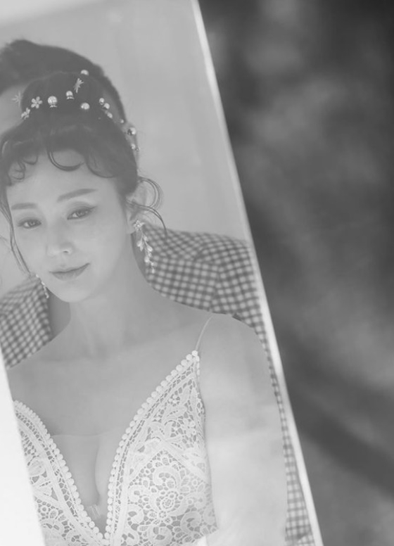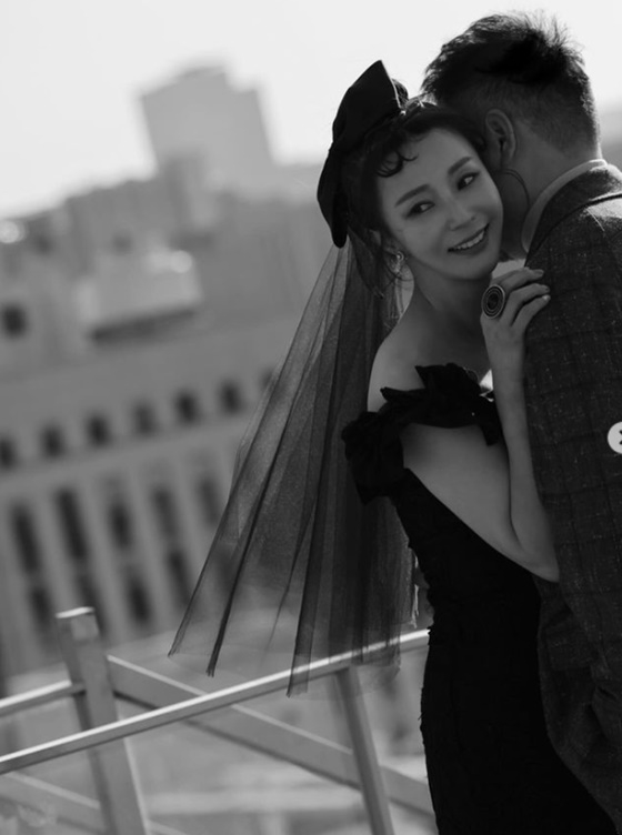 안혜경은 남편 품에 폭 안겨 있는 웨딩 화보를 공개하기도 했다.