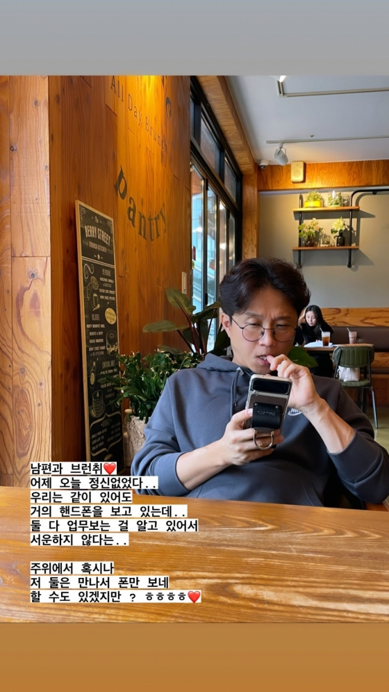 이어 "어제 오늘 정신없었다. 우리는 같이 있어도 거의 핸드폰을 보고 있는데 둘 다 업무 보는 걸 알고 있어서 서운하지는 않다"며 "주위에서 혹시나 '저 둘은 만나서 핸드폰만 보네' 할 수도 있겠지만?"이라고 했다.