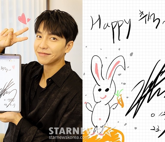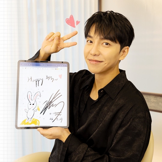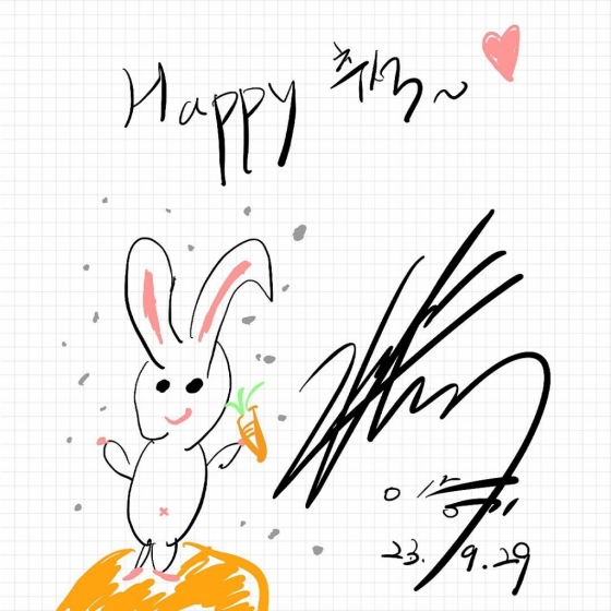 사진 속에는 이승기가 태블릿에 직접 그림을 그리며 추석 인사말을 적는 모습이 담겨 있었다. 이승기는 "Happy 추석~♥"이라며 달토끼를 그려 팬들에게 선보였다.