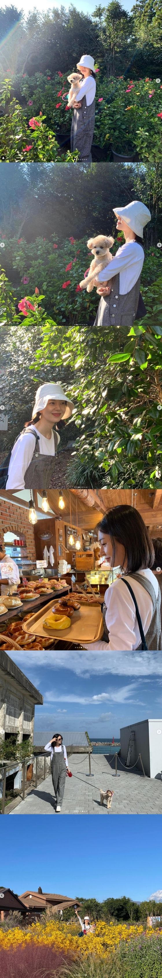 사진 속 백진희는 자신의 반려견과 함께 제주도에 놀러간 모습이다.