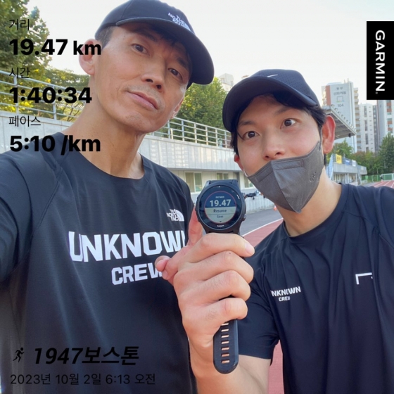 그는 러닝 크루인 가수 션과 인증샷을 공개해 눈길을 끌었다.